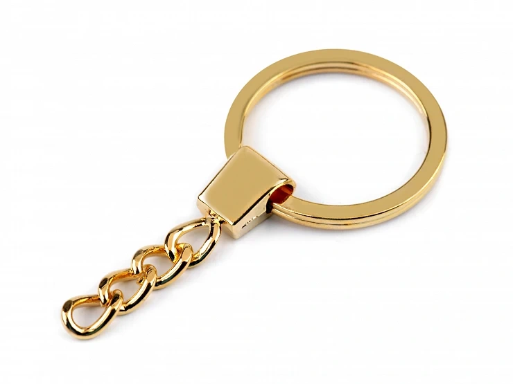 Kovový kroužek s připevněným řetízkem je využitelný jako klíčenka nebo přívěsek.